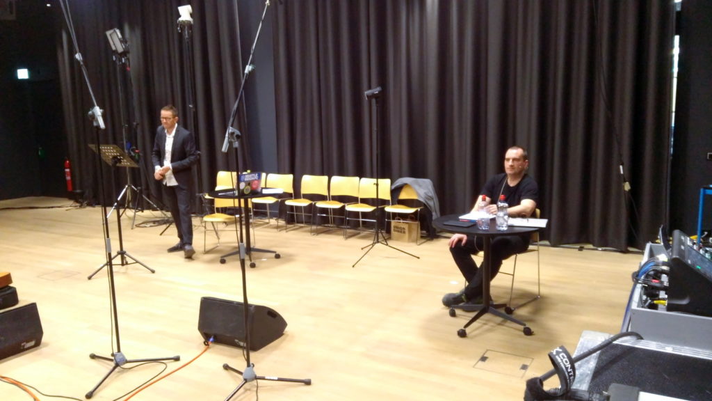 Die «Ohrfeigen», sonst ein munterer Reigen mit ausgelassenem Publikum, für einmal ganz leise – nur die Künstler und Künstlerinnen, Regie und Techniker mit gebührendem Abstand zueinander im Auditorium des Meret-Oppenheim-Hochhauses.
