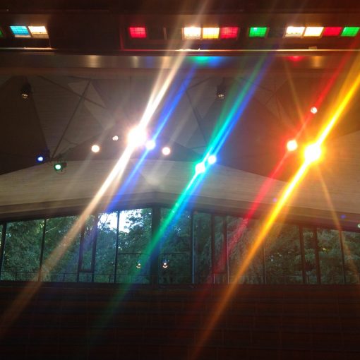 Die Holzkuppel gibt ein schönes offenes und angenehmes Raumgefühl. Für die gute Sprachverständlichkeit ist diese eher ein Problem. Mit der neuen Tonanlage erreichten wir eine sehr gute Qualität, dank der digitalen Beamforming -Technologie wird der Schall direkt zu den Hörenden gelenkt.