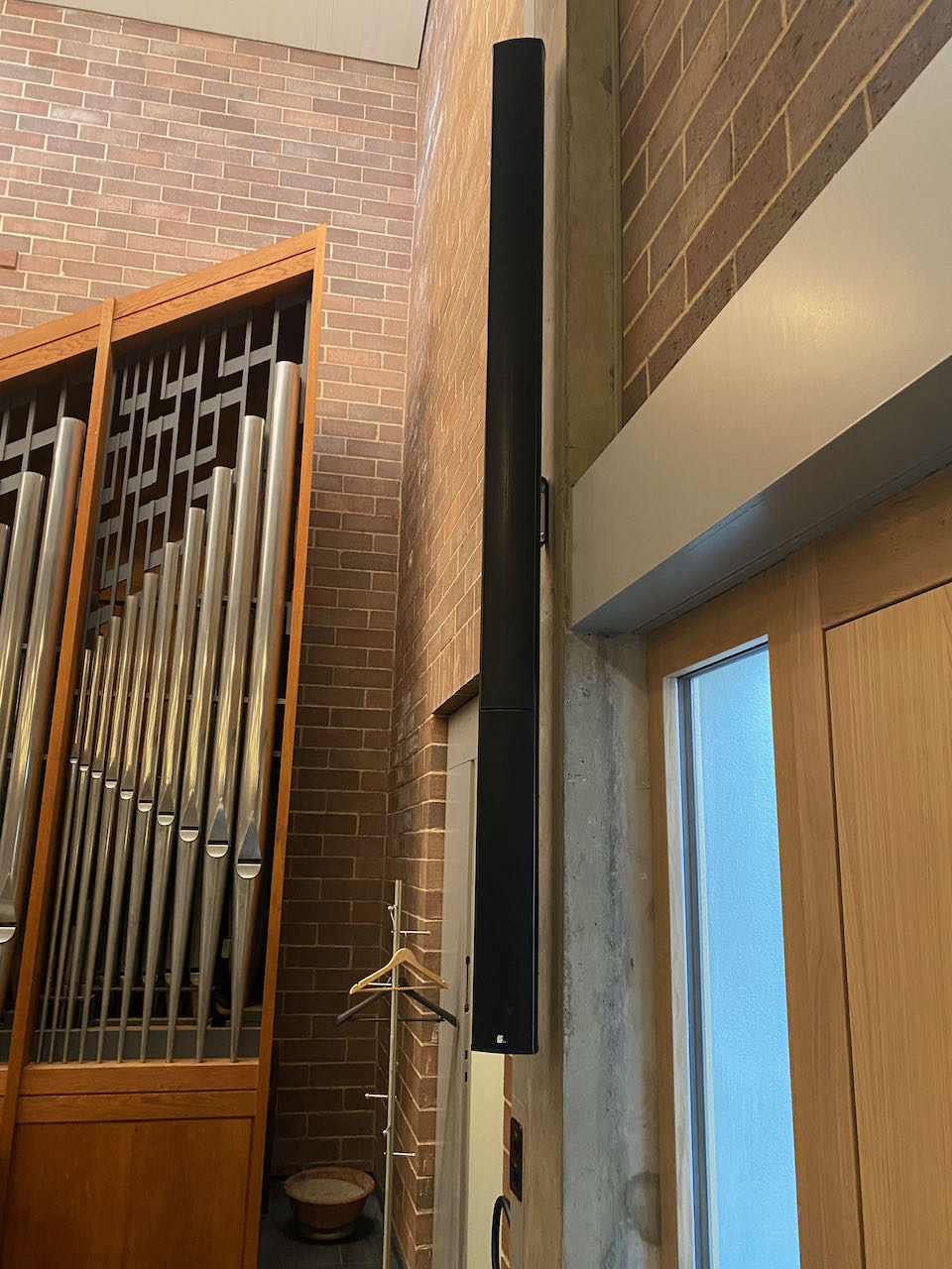 Da die Kirche eine ungewöhnliche Form hat und die Orgel links vom Kirchenschiff es nicht erlaubt, beidseitig eine Tonsäule zu installieren, können wir mit dieser Lösung mit einem einzigen Lautsprechers eine sehr breite Abdeckung in der ganzen Kirche erreichen. Es ist beeindruckend, mit wie viel Klarheit die Sprache ziemlich homogen wahrgenommen wird. Auch die Wiedergabe von Musik klingt warm, natürlich und ausgewogen.