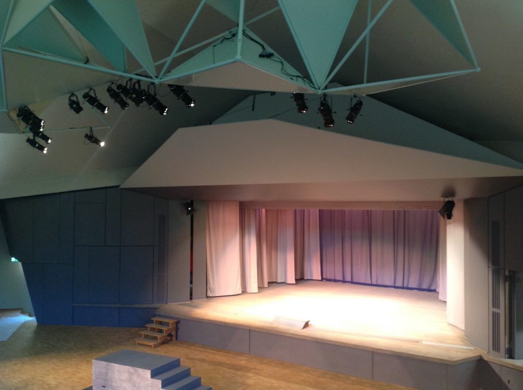 Die Bühnenerweiterung schafft Nähe zum Publikum und mehr Stauraum. Die neuen Seitenbühnen kaschieren die Saaltüren und bieten dringend benötigte Bühnennebenflächen. Die neue Beleuchtungsbrücke bricht die Schallwellen.