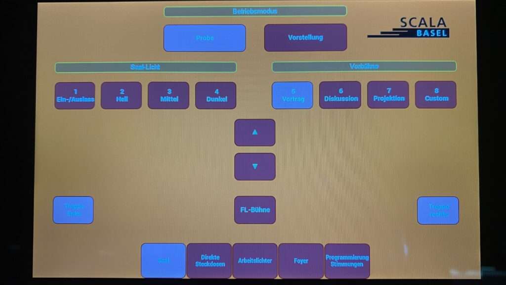 Die Horizontbeleuchungsanlage besteht aus einem motorischen Lichtzug System Schelling. Die Anlage wurde vor etlichen Jahren provisorisch angepasst. Dieses „Providurium“ bedeutete ein unpraktisches Fahren der Züge. Es bestand überdies ein nicht geringes Risiko, dass sich Kabel verhedderten oder sogar reissen konnten bei einer Fehlbedienung der Bühnen-Maschine. Dieses Risiko wollten wir nun endlich ausschliessen.
